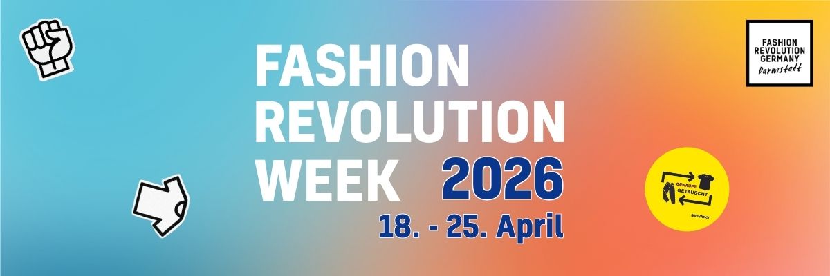 Vom 18. bis 25. April verwandelt sich Darmstadt in ein lebendiges Zentrum für faire und nachhaltige Mode: Die Fashion Revolution Week lädt dich ein, mit einer Ausstellung, mit Workshops, Kleidertausch, Film, Pubquiz und inspirierenden Aktionen Teil einer Bewegung zu werden, die Menschenrechte und Umweltschutz in den Mittelpunkt stellt.