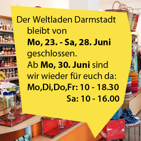 Weltladen bleibt vom 23. – 28. Juni geschlossen. Eine wichtige Veränderung: Wir stellen um!