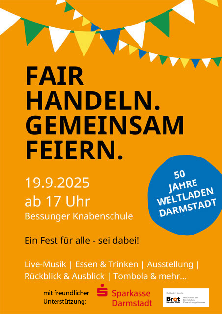 Fairer Handel, politisches Engagement und globale Solidarität – seit 50 Jahren steht der Weltladen Darmstadt für eine gerechtere Welt. Das wollen wir feiern!