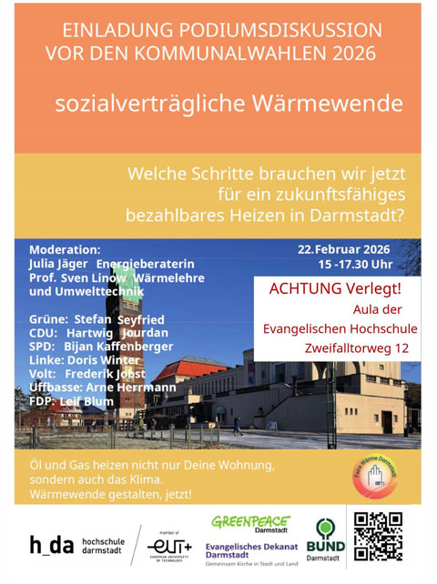 Gemeinsam laden Hochschulen, Bildungseinrichtungen und engagierte Partner:innen zu einem transdisziplinären Abenteuer ein: Entdecken – Diskutieren – Mitmachen!Du kannst erforschen, wie Ökologie, Technik, Wirtschaft und Soziales zusammenwirken – und nachhaltige Zukunftsfragen aktiv mitgestalten. Ort: Evangelische Hochschule Darmstadt, Zweifalltorweg 12, 64293 Darmstadt mehr Infos: https://alumni.eh-darmstadt.de/termine/tag-der-nachhaltigkeit-an-der-ehd/