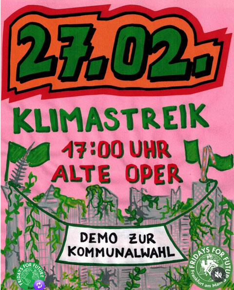 Fridays for future rufen zum Klimastreik zur Kommunalwahl auf. Treffpunkt: Alte Oper, Frankfurt. |