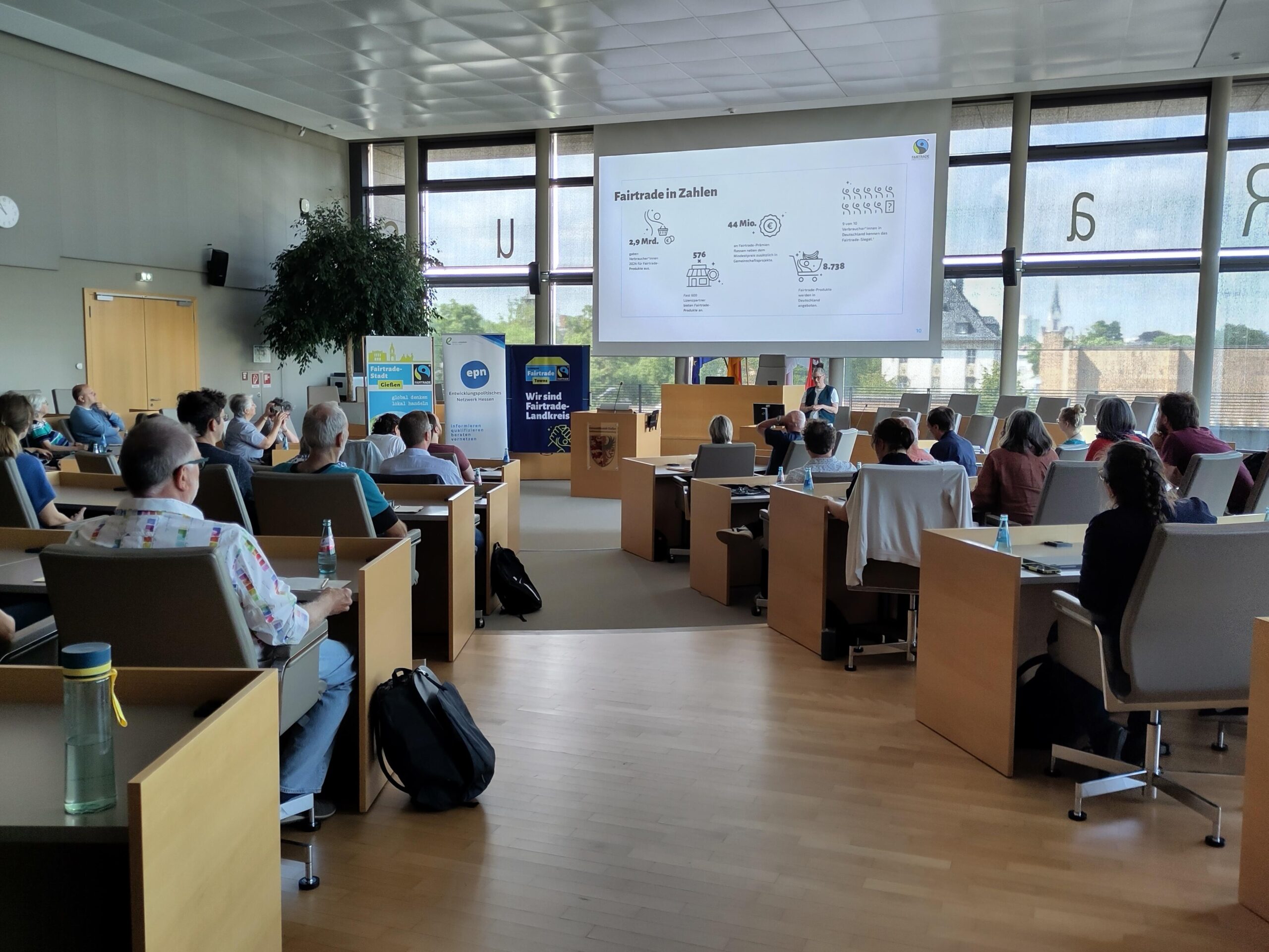 Es luden ein: Die Fairtrade-Town Gießen und der Fairtrade-Landkreis Gießen sowie die Eine Welt-Promotorin für Fairen Handel und nachhaltige Beschaffung des Entwicklungspolitischen Netzwerks Hessen in Kooperation mit Fairtrade Deutschland e.V.